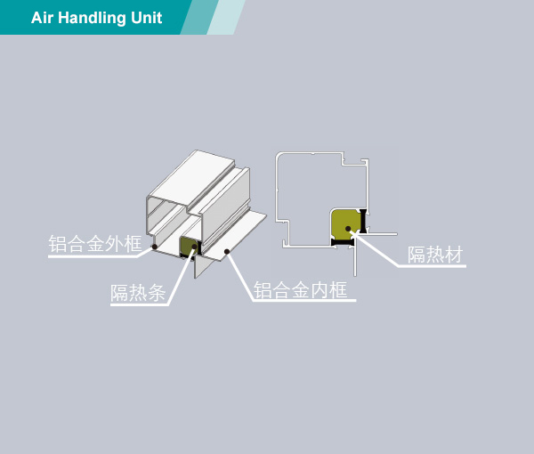 william威廉亚洲新一代MAH组合式空气处理机,艾洛斯(Aiolos)系列,采用防冷桥铝合金框架结构设计,面板与框架为压扣连接方式。